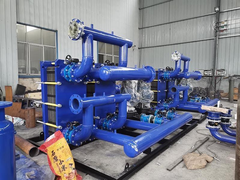 换热机组是一种常用的换热设备,为了获得更高的热性能,流体通常通过热交换器回流,根据工作环境、压力和流体性质,选择焊接方式和所需密封材料,根据工作压力的热设计和阻力的计算结果,选择各部件的材料和尺寸,以保证设备的稳定运行,由于热交换器长时间工作,传热板表面会出现不同程度的污垢或沉积物,从而增加流动阻力,降低传热性能,这些主要表现为进、出口压力表压差增大,冷介质出口温度低,必须进行冲洗,洗完之后,我们还要对它进行调试,以保证产品的正常使用,那么在调试过程中需要注意什么呢?